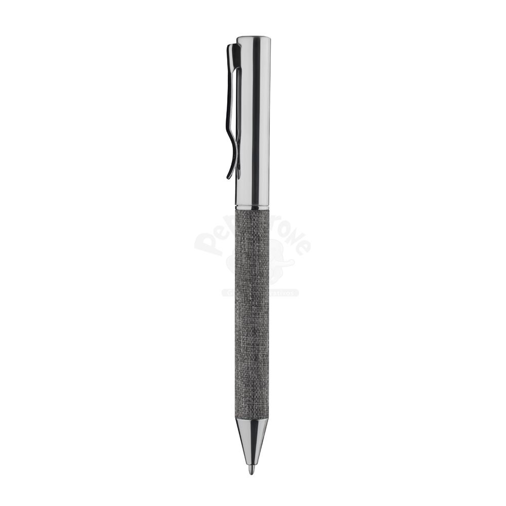 Kit Escritório de metal com detalhes em PET Reciclado, contendo: 1 Chaveiro em metal; 1 Caneta Metálica. Acompanha berço com espuma.