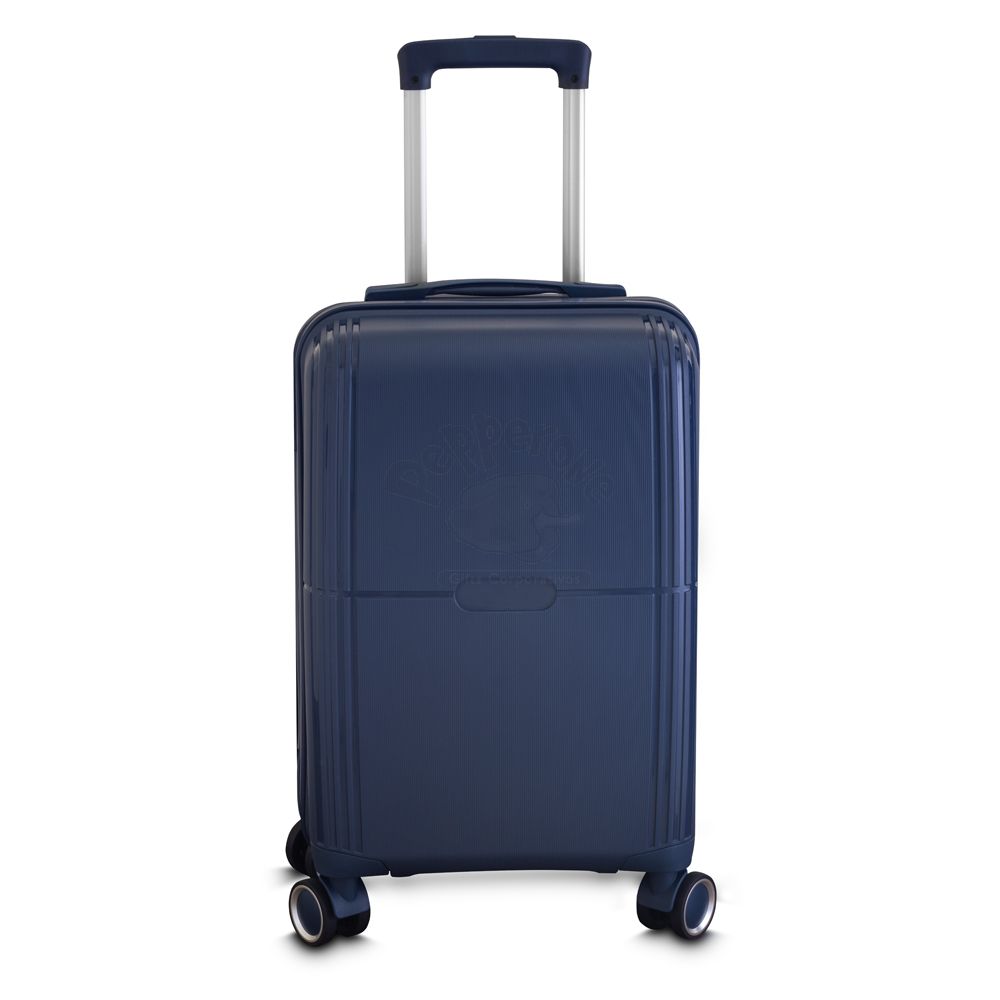 Mala viagem pequena em Polipropileno com abertura frontal com zíper para acesso ao interior da mala, sistema de carrinho de aço, cadeado com senha alça de mão na latera e na parte superior e quatro rodas de 360 graus. Acompanha plaquinha em inox para personalização.