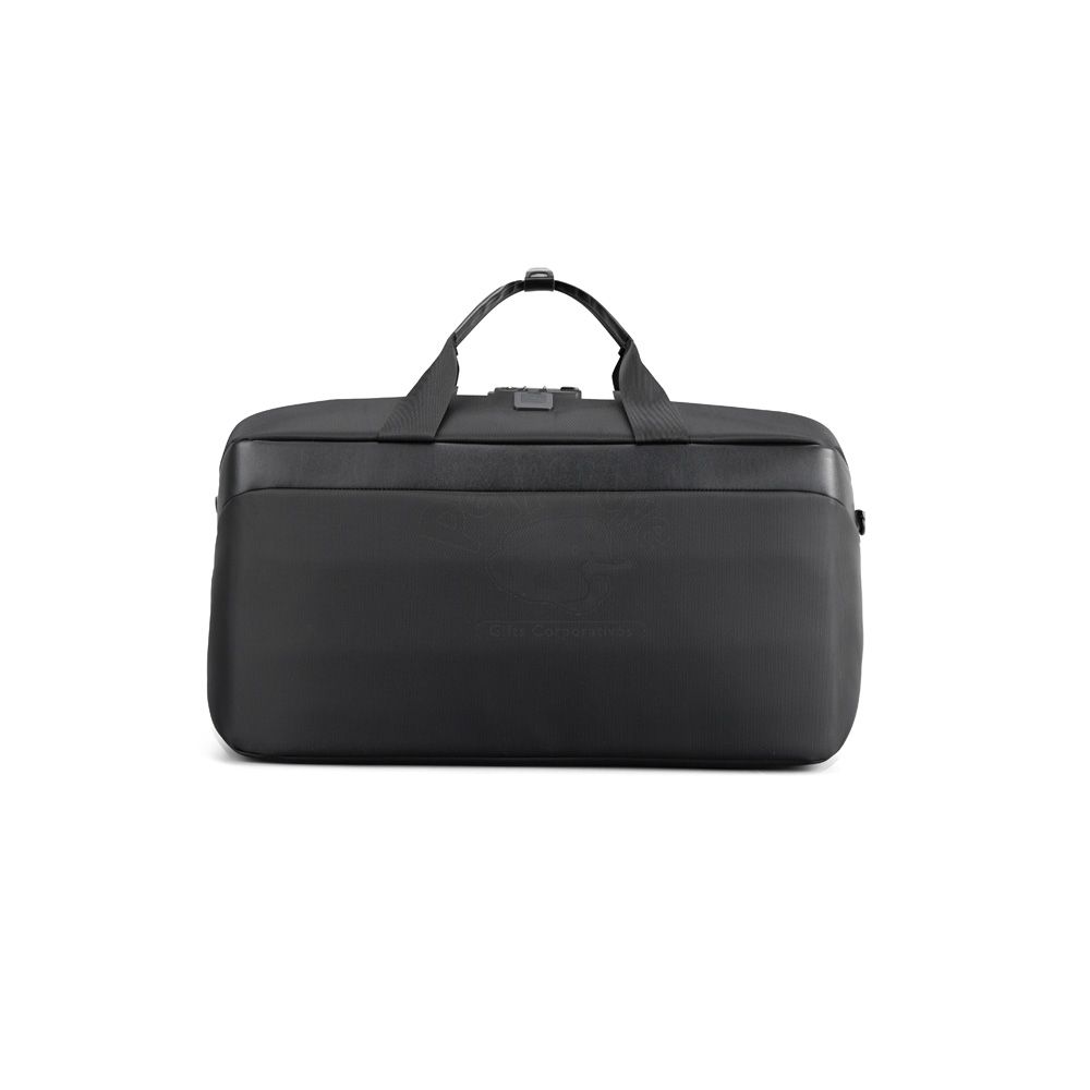 Mala executiva em poliéster, compartimento interno com zíper, alça de ombro e mão, entrada usb, cadeado com senha/segredo, cadeado tipo TSA e compartimento para notebook de até 15,6".
