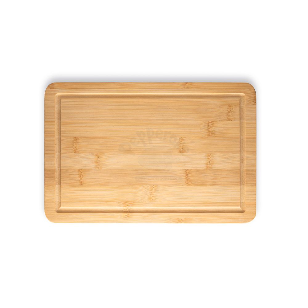 Tábua de corte em bambu. Certificação EU Food Grade. A cor e o resultado da impressão nos materiais naturais pode variar entre produtos.