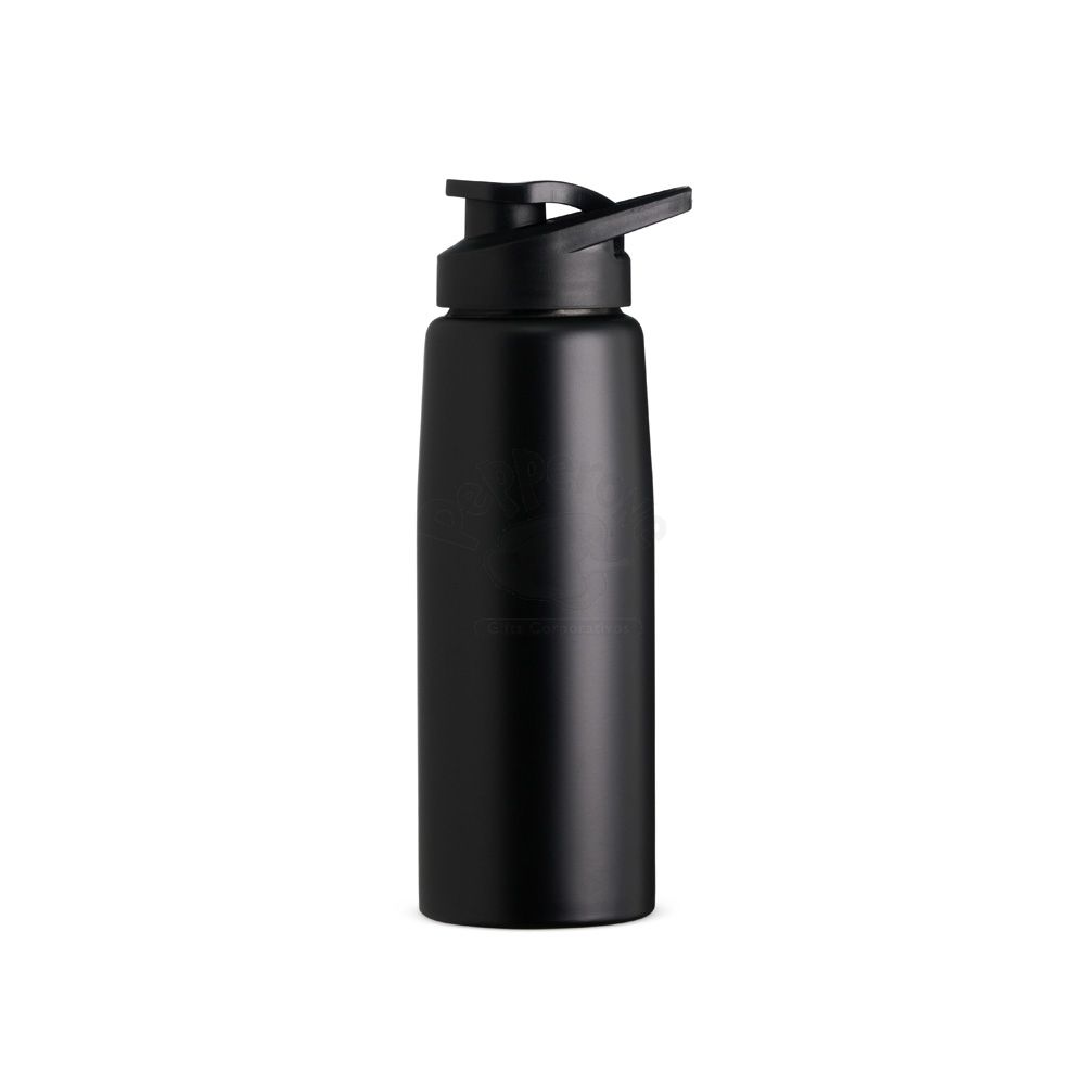 Squeeze inox de 880ml com pintura fosca. Possui tampa plástica rosqueável, alça e tampa protetora para o bocal.
