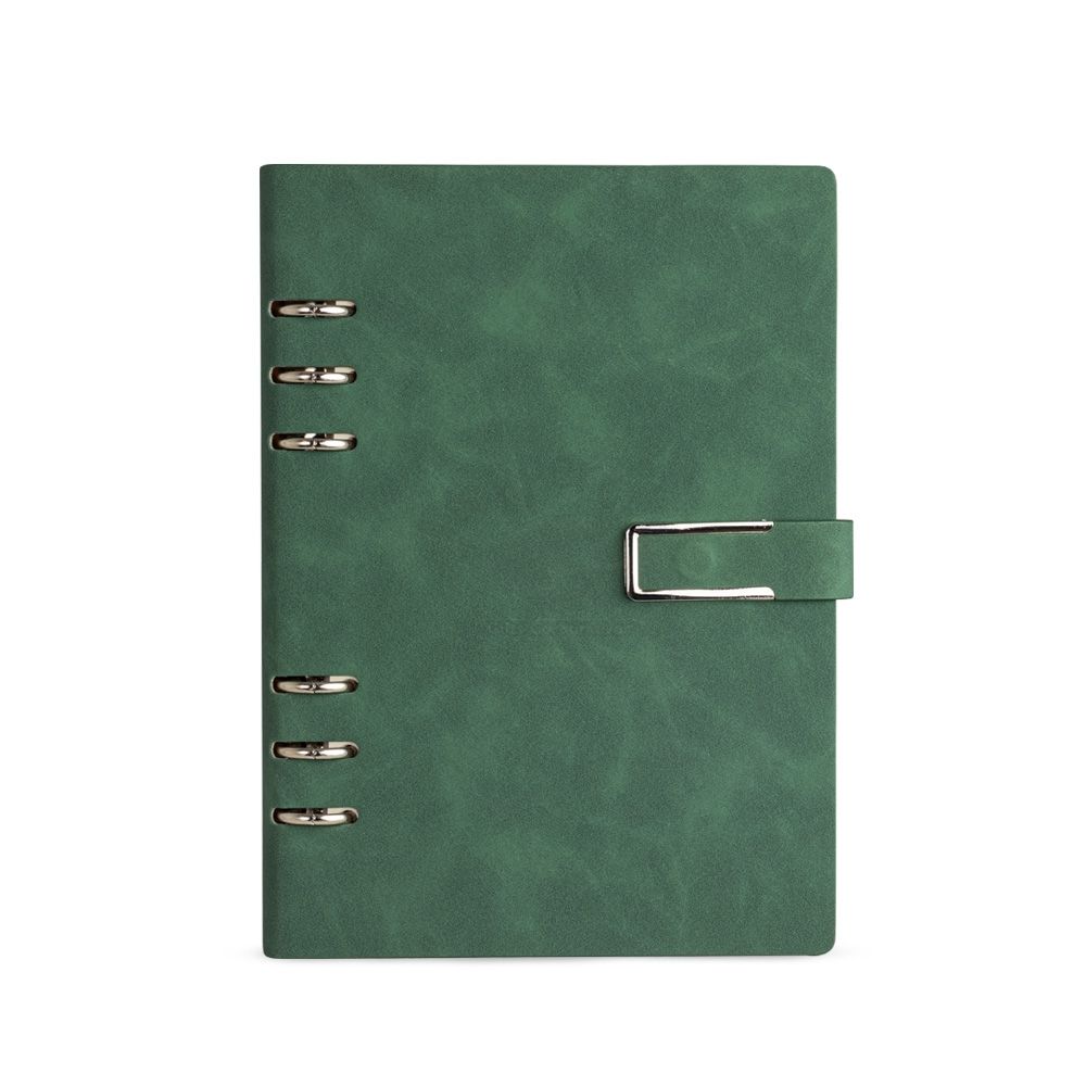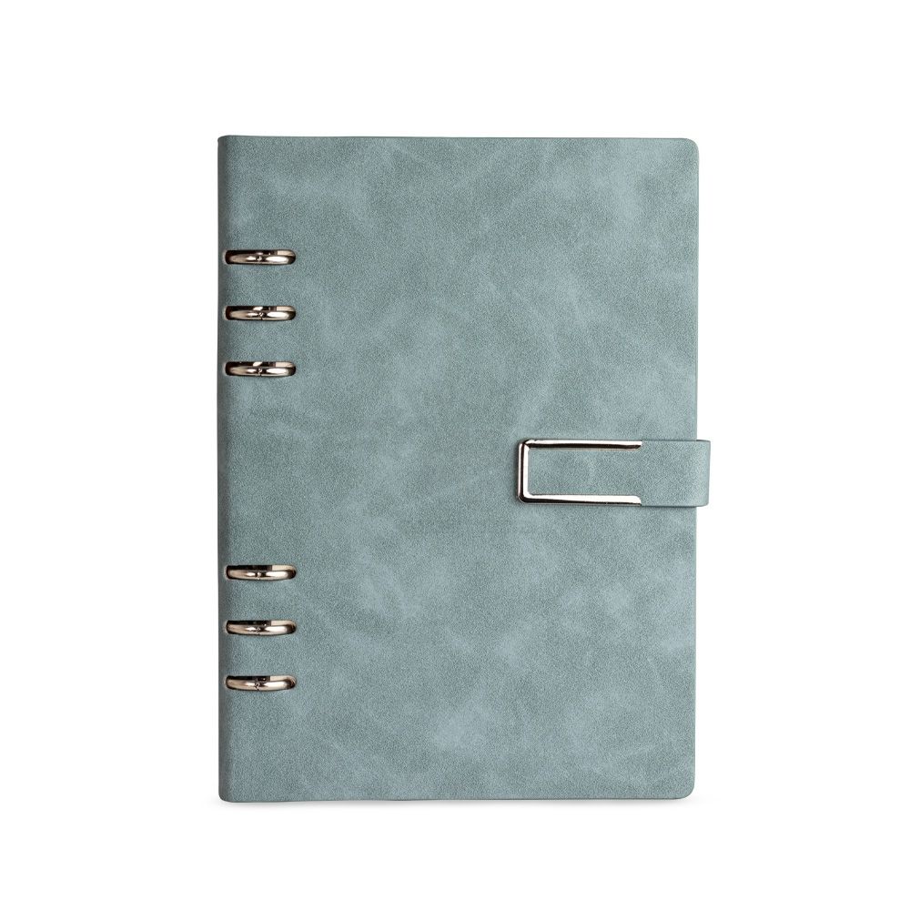 Organize todas as anotações de forma prática com o nosso caderno fichário em PU. Com um design super elegante, ele tem capa dura no formato A5 e um fechamento de fivela imantado que protege as 119 folhas em papel marfim. Os seis anéis permitem retirar e reorganizar as folhas sempre que precisarem, deixando tudo do seu jeito. E para completar, a primeira folha traz um espaço especial para dados pessoais. Esse caderno fichário é a escolha perfeita para manter tudo organizado e com muita sofisticação.